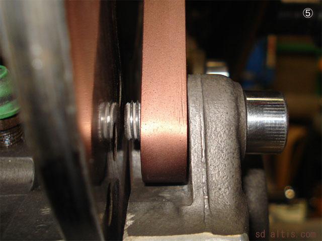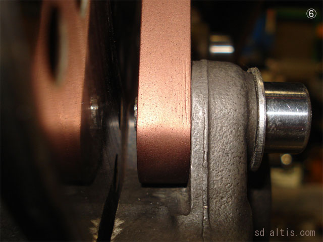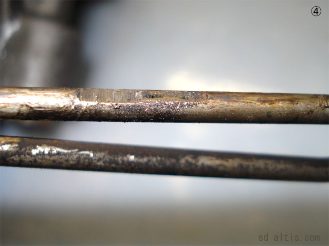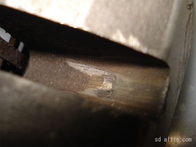 ④ローターの外周がパッド固定ピンに接触している為、磨り減ってるピン。