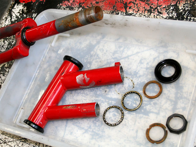 自転車の部品を使用して上下ともベアリング化にするのが
