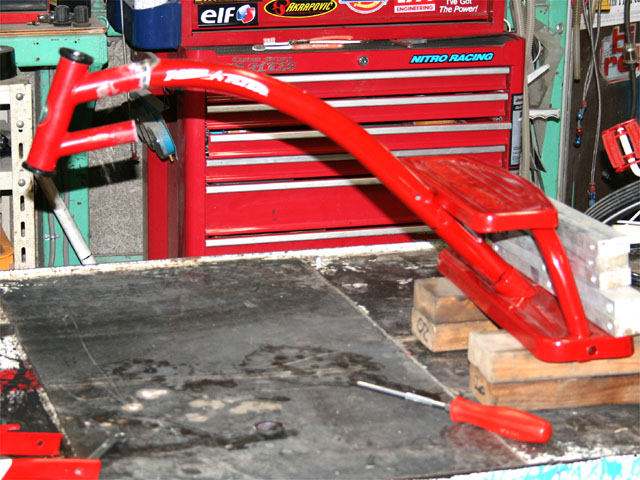 フレーム後部もベントパイプを溶接延長して、リジット風にフィニッシュ。